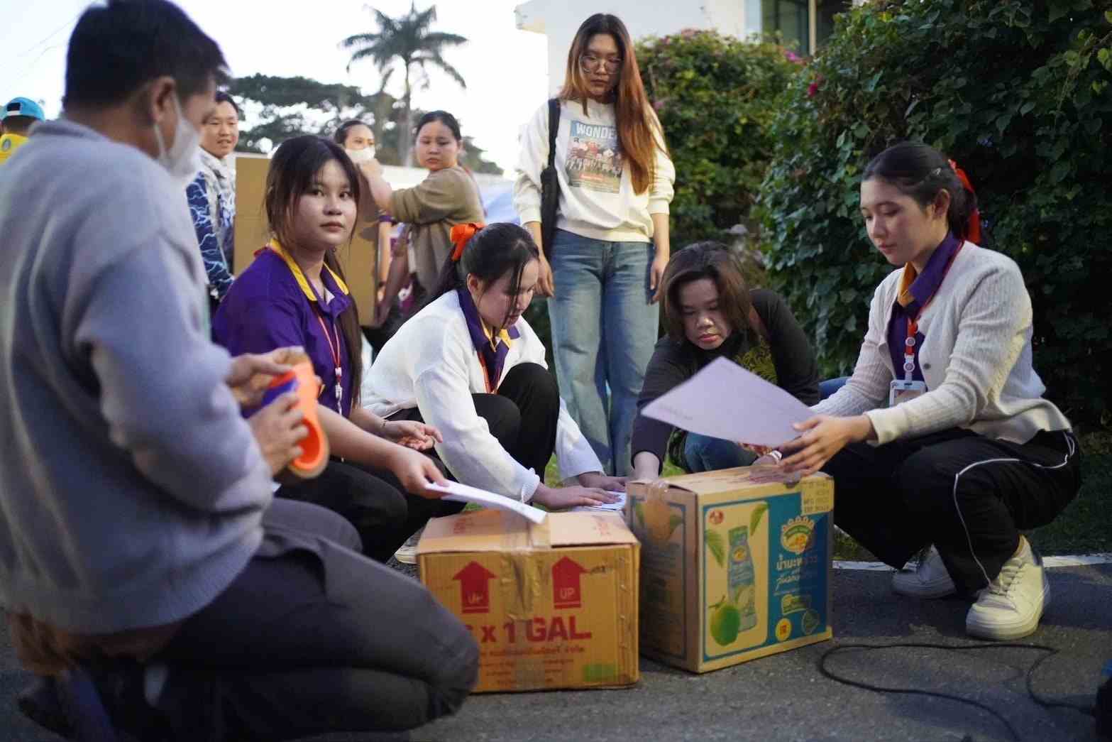 บรรยากาศการทำงานของอาสาสมัครเป็นไปอย่างคึกคักแต่เป็นระบบ มีการตั้งโต๊ะแยกประเภทสิ่งของ จัดทีมคัดแยก ทีมบรรจุ และทีมติดสติกเกอร์ระบุปลายทางอย่างละเอียด ทุกขั้นตอนดำเนินไปภายใต้การประสานงานของเจ้าหน้าที่ฝูงบิน 416 ซึ่งมีประสบการณ์ด้าน HADR คอยดูแลให้กระบวนการเป็นไปอย่างรัดกุม ปลอดภัย และพร้อมต่อการลำเลียงขึ้นเครื่องบินในเวลาอันจำกัด