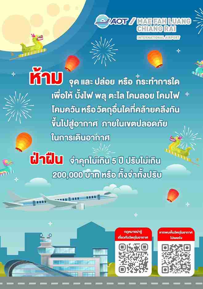 ปีนี้ประเพณียี่เป็ง/ลอยกระทงตรงกับวันที่ 5 พฤศจิกายน 2568 ซึ่งตามสถิติการเดินทาง มักเป็นช่วงที่มีเที่ยวบินหนาแน่นกว่าปกติ ขณะเดียวกัน “โคมลอย–พลุ–ตะไล” และกิจกรรมโดรนเพื่อถ่ายภาพ ก็มีแนวโน้มเพิ่มจำนวนสูงขึ้นรอบพื้นที่สนามบิน หากปล่อยโดยไม่ควบคุม อาจก่อเหตุ ร้ายแรงต่ออากาศยาน และ “ชีวิต” ได้โดยตรง