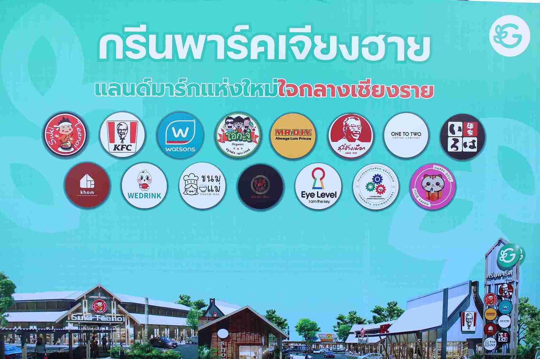 ไฮไลต์เชิงพาณิชย์ที่ทำให้เกิดแรงดึงดูดผู้บริโภคทันที คือรายชื่อแบรนด์ที่ผู้คนรู้จัก เช่น สุกี้ตี๋น้อย (สาขาแรกในเชียงรายตามข้อมูลโครงการ), KFC ที่เปิด 24 ชั่วโมง, Watsons, MR.D.I.Y. และแบรนด์อาหาร/ไลฟ์สไตล์อื่น ๆ