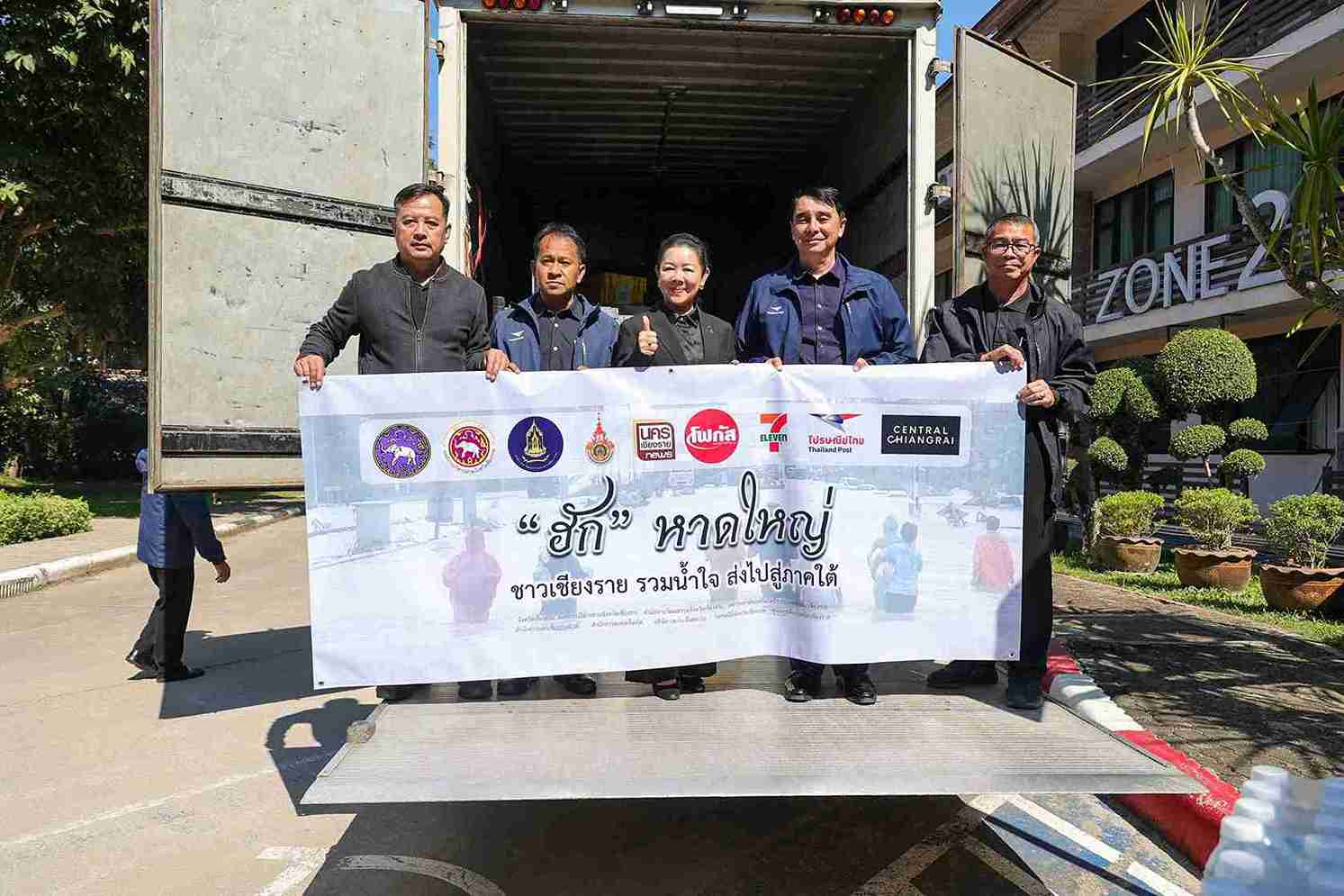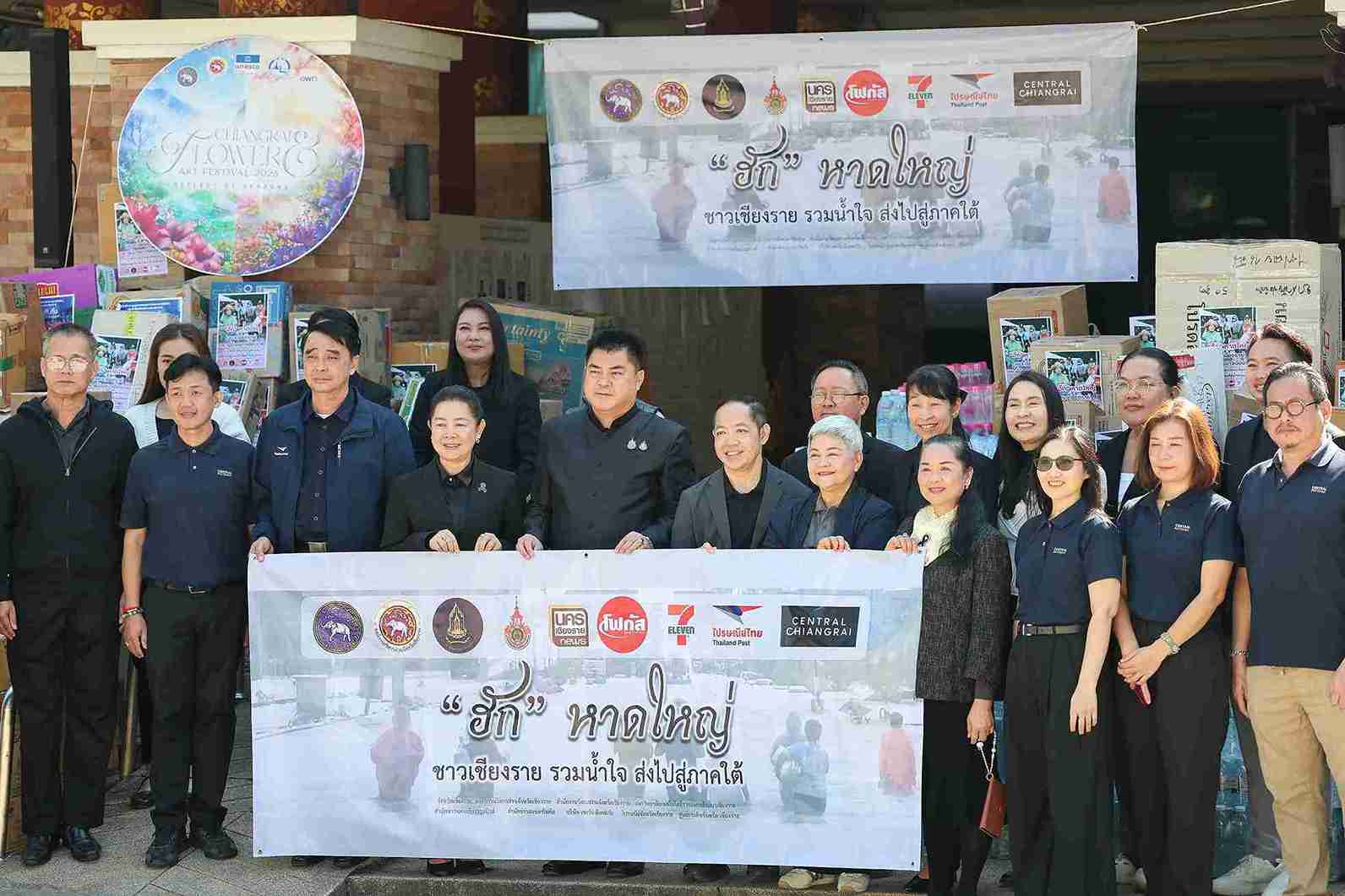 ข้างหน้าคือเวทีเรียบง่ายแต่เปี่ยมความหมาย ด้านหลังคือกองสิ่งของบรรเทาทุกข์ที่ถูกจัดเรียงอย่างเป็นระเบียบ ก่อนจะถูกขนขึ้นรถบรรทุกหกล้อของไปรษณีย์ไทย จังหวัดเชียงราย น้ำหนักรวมกว่า 4 ตัน เพื่อเดินทางไกลจากดินแดนเหนือสุดของประเทศลงสู่ เทศบาลเมืองควนลัง อำเภอหาดใหญ่ จังหวัดสงขลา ซึ่งเป็นหนึ่งในพื้นที่ที่ได้รับผลกระทบจากอุทกภัยครั้งใหญ่ในภาคใต้ช่วงปลายเดือนพฤศจิกายน 2568