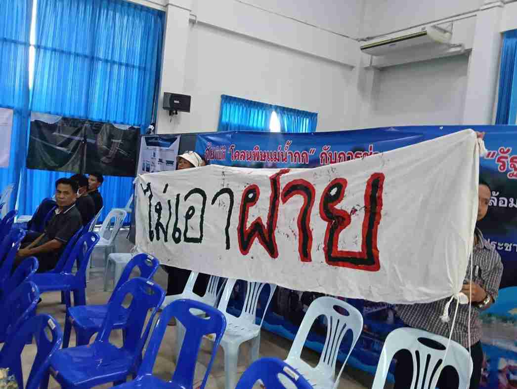 ตลอดการประชุม ชาวบ้านชูป้ายข้อความ “No ฝายดักตะกอน / เยียวยาประชาชน / จัดหาแหล่งน้ำให้ทุกภาคส่วน” และสะท้อนปัญหาตรงไปตรงมา ต้องการน้ำสะอาดอุปโภคบริโภค–น้ำเกษตรทดแทนการใช้น้ำกกที่ปนเปื้อน มากกว่าการสร้างฝายขนาดใหญ่ที่พวกเขา “ไม่เชื่อว่าจะช่วยแก้ปัญหาได้จริง” และ “อาจทำให้เดือดร้อนเพิ่ม” โดย พ.ท.บุญโรจน์ กองแก้ว นายก อบต.ท่าตอน เน้นย้ำบนเวทีว่า แก้ปัญหาเร่งด่วนก่อน” พร้อมเสนอให้รัฐ เร่งเจาะบ่อบาดาล–หาแหล่งน้ำสะอาด และ “เดินหน้าเจรจาต้นตอเหมืองฝั่งต้นน้ำต่างประเทศ” ในกรอบความร่วมมือของรัฐไทย
