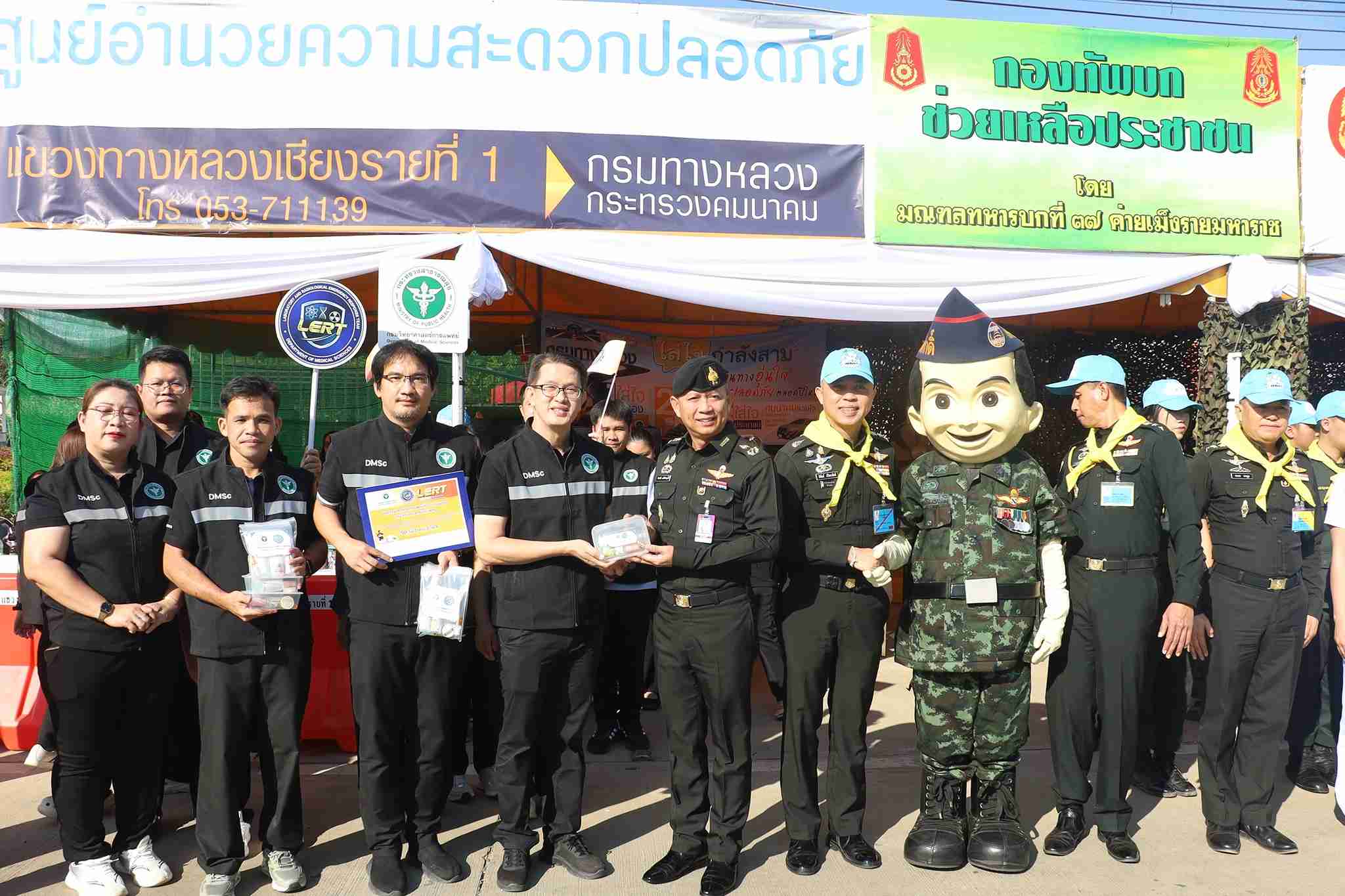 ภายใต้นโยบาย “ทหารเป็นที่พึ่งของประชาชนในทุกโอกาส” ศูนย์อำนวยการจิตอาสาพระราชทาน มณฑลทหารบกที่ 37 (มทบ.37) ร่วมกับศูนย์บรรเทาสาธารณภัย มทบ.37 และหน่วยงานภาคีเครือข่ายทั้งภาครัฐ–การศึกษา–โครงสร้างพื้นฐาน ร่วมกันจัดตั้ง “จุดบริการประชาชน” ชั่วคราวขึ้น ระหว่างวันที่ 30 ธันวาคม 2568 ถึง 5 มกราคม 2569 เพื่อดูแลความปลอดภัยและอำนวยความสะดวกให้กับผู้ใช้เส้นทางสายสำคัญที่มุ่งหน้าสู่จังหวัดเชียงราย
