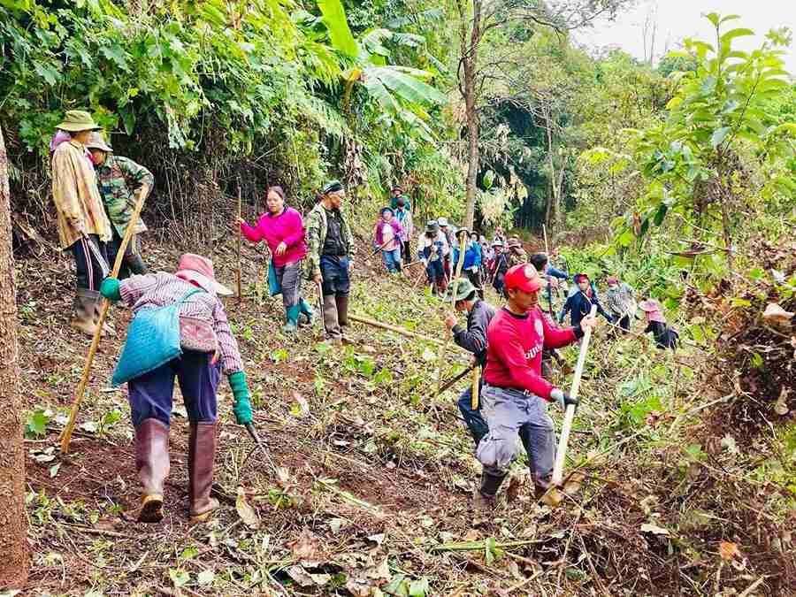ชาวปางขอนเร่งทำแนวกันไฟปกป้องป่าต้นน้ำ ซึ่งเป็นแหล่งปลูกกาแฟอาราบิก้าสำคัญของเชียงราย