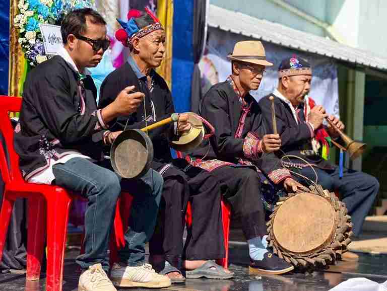 บนเวทีพิธี เสียงดนตรีชาติพันธุ์คลอไปกับ การฟ้อนรำ และ การขับเสภา ตามวิถีอิ้วเมี่ยน ถ่ายทอดเรื่องราวความกตัญญูและความภาคภูมิใจในรากเหง้าวัฒนธรรม อัตลักษณ์การแต่งกาย–เสียงแคน–จังหวะกลองที่สืบทอดกันมายาวนาน ถูกนำมาร้อยเรียงเป็น “ภาษาแห่งพิธีกรรม” เพื่อแสดงออกถึงความอาลัยและ สำนึกในพระมหากรุณาธิคุณ ที่ทรงมีต่อพสกนิกรบนผืนดอยตลอดหลายทศวรรษที่ผ่านมา