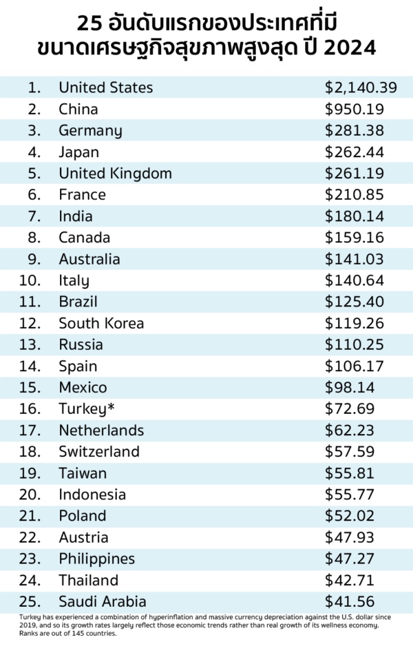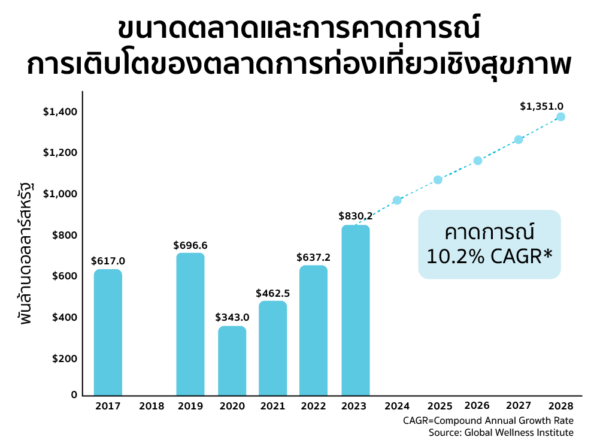 ภาพใหญ่ของตลาดโลกช่วยอธิบายว่าทำไมเส้นทางนี้ถึงมีความหมายเกินกว่าการเพิ่มความถี่ของเที่ยวบิน ข้อมูลจาก TAT Review อ้างอิง Global Wellness Institute ระบุว่า ตลาด Wellness Tourism ทั่วโลกมีมูลค่า 830.2 พันล้านดอลลาร์สหรัฐในปี 2023 คิดเป็น 7.8 เปอร์เซ็นต์ของการเดินทางท่องเที่ยวทั้งหมด และคาดว่าจะเพิ่มเป็น 1,351 พันล้านดอลลาร์สหรัฐในปี 2028 ด้วยอัตราเติบโตเฉลี่ย 10.2 เปอร์เซ็นต์ต่อปี นักท่องเที่ยวเชิงสุขภาพระหว่างประเทศมีค่าใช้จ่ายเฉลี่ย 1,668 ดอลลาร์สหรัฐต่อทริป สูงกว่านักท่องเที่ยวทั่วไป 36 เปอร์เซ็นต์ ขณะที่นักท่องเที่ยวเชิงสุขภาพภายในประเทศใช้จ่ายสูงกว่าตลาดทั่วไปยิ่งกว่าเดิม