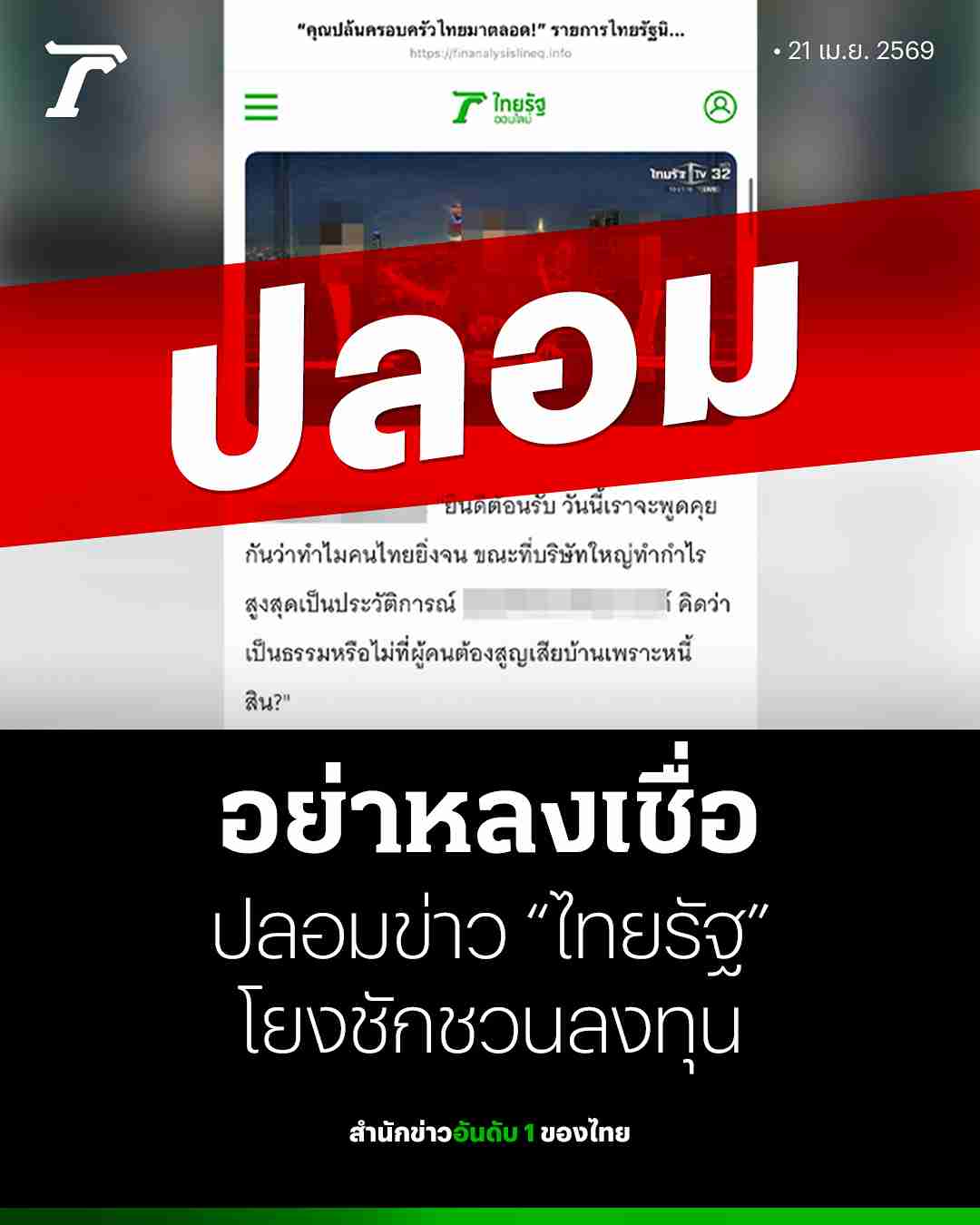 - ไทยรัฐออนไลน์ วันที่ 21 เมษายน 2569 กรณีปลอมหน้าเว็บข่าว ใช้ภาพ AI และเนื้อหาเท็จเชื่อมโยงไปสู่การชักชวนลงทุน พร้อมยืนยันว่าไม่ใช่เนื้อหาที่กองบรรณาธิการผลิต