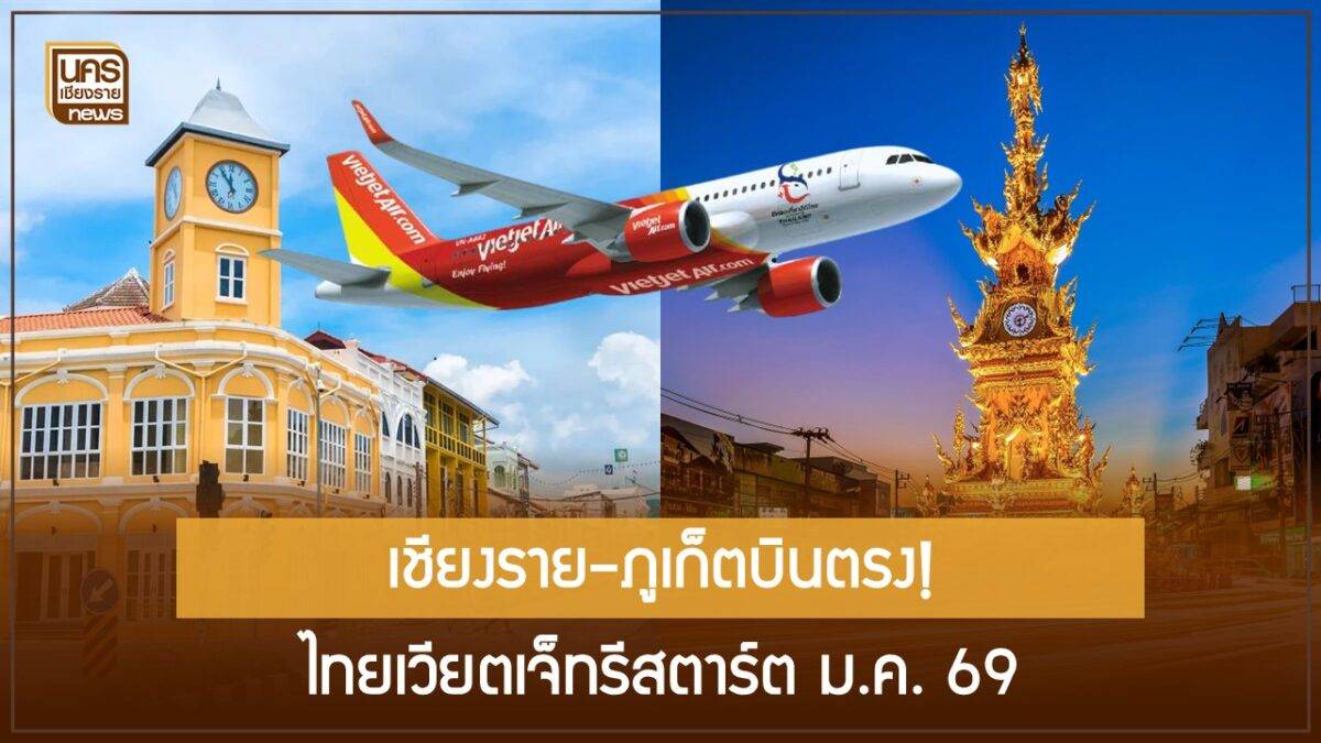 ข่าวดี 2 เด้ง! ไทยเวียตเจ็ทรีสตาร์ต “เชียงราย–ภูเก็ต” ม.ค. 69 รับกระแสดีมานด์เที่ยวเหนือต่อใต้ ททท.ชี้ ภูเก็ต–กระบี่ ติด Top 3 จุดหมายในฝัน ขณะที่ “เชียงราย” ติด Top 5 พร้อมต่อยอดโอกาสเชื่อมเศรษฐกิจท่องเที่ยวสองฟากฝั่ง