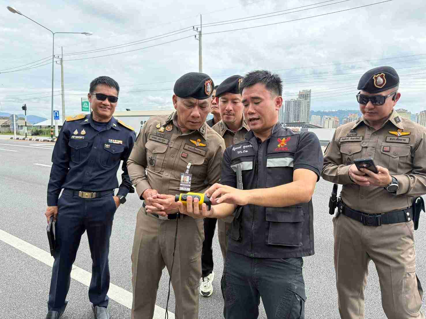 หนึ่งวันถัดมา (4 พ.ย.) แนวรบเลื่อนไป แม่สอด จ.ตาก ตำรวจภูธรภาค 6 ภายใต้การกำกับของ พล.ต.ท.กิติศักดิ์ ดุรงควิบูลย์ มอบหมาย พล.ต.ต.ณัฐวุฒิ ภาคภูมิ รอง ผบช.ภ.6 และ พล.ต.ต.ไพศาล นันตา ผบก.ภ.จว.ตาก ลงพื้นที่ตรวจจุดเสี่ยง ด่านบ้านวังตะเคียน (ตรงข้าม เมียวดีคอมเพล็กซ์) และแนวตรงข้าม ชเวก๊กโก โดยใช้โดรน “บินสำรวจ–วัดความแรง” เจาะจงจุดที่เคยมีปัญหา โรมมิ่ง ไปใช้เครือข่ายเพื่อนบ้าน และสัญญาณไทย “ล้ำข้ามแดน” อันอาจกลายเป็นท่อน้ำเลี้ยงให้แก๊งคอลเซ็นเตอร์–สแกมเมอร์ใช้งาน