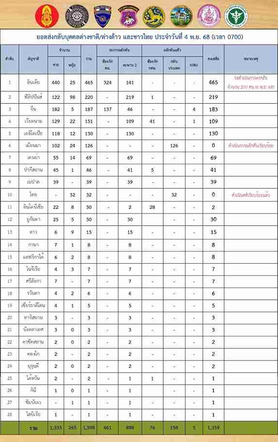 คำถามหลักมีสองชั้น—ชั้นแรก คือรัฐไทยจะ “รีดข้อมูลโครงข่าย” จากกลุ่มนี้อย่างไรให้ได้มากที่สุดก่อนส่งกลับ เพื่อสาวไปถึง ขบวนการนำพา–ตัวการใหญ่–การฟอกเงิน ที่ใช้ไทยเป็นศูนย์กลางการกระจาย “แรงงานสแกมเมอร์” ไปยังพม่า–กัมพูชา–ลาว ชั้นถัดมา คือสมดุลระหว่าง ภาระมนุษยธรรม กับ ความมั่นคง–กฎหมาย โดยเฉพาะเมื่อหลายประเทศต้นทางยังไม่เร่งรับกลับ ขณะที่บางชาติอย่าง อินเดีย (465 คน) มีแผนรับกลับ 6 พ.ย.