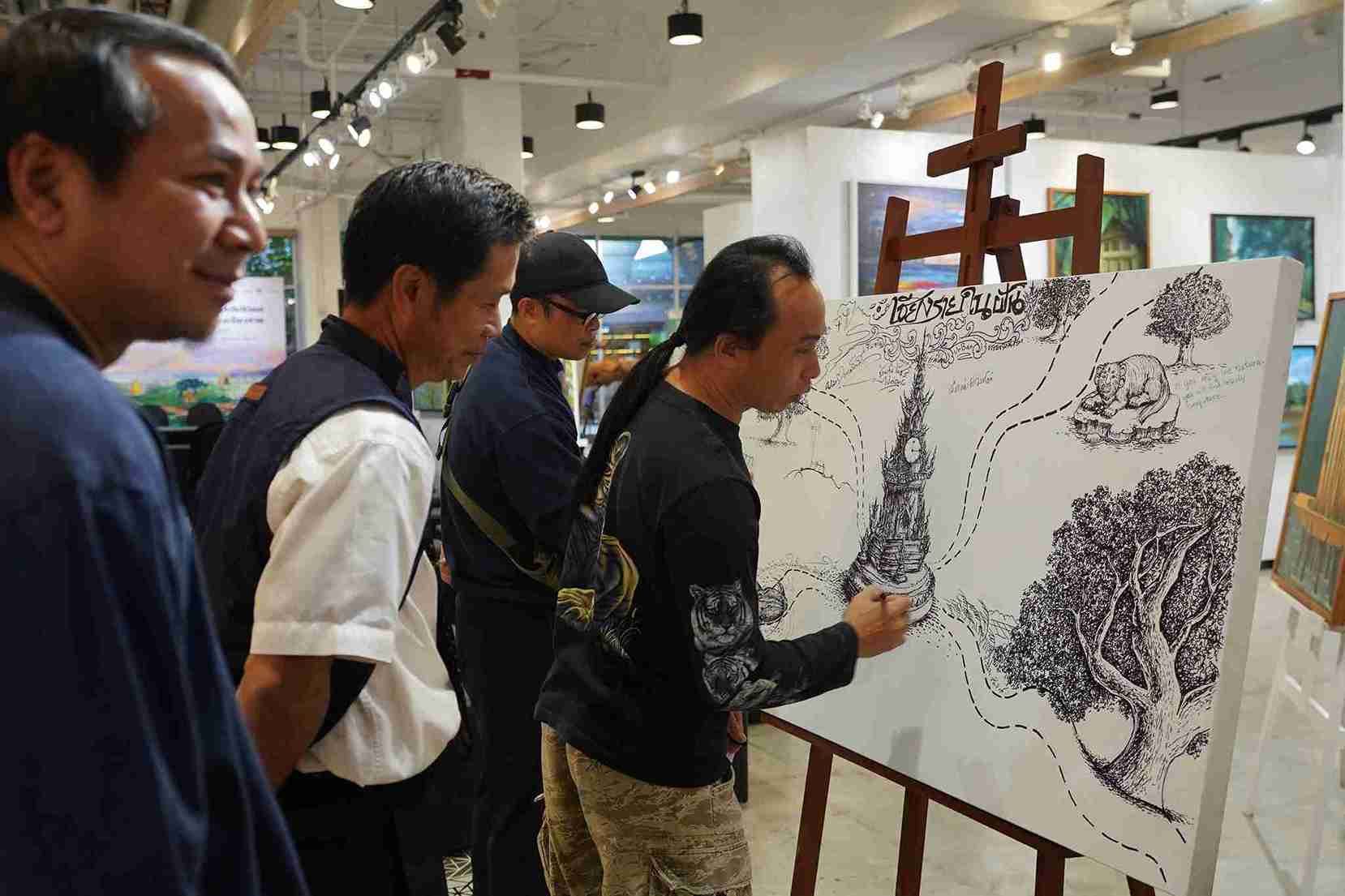ท่ามกลางโถงกว้างของห้างสรรพสินค้า ผลงานศิลปะกว่า 50 ชิ้น จากศิลปินเชียงรายมากกว่า 30 คน รวมถึงผลงานของศิลปินแห่งชาติ ถูกจัดวางอย่างประณีต ทั้งภาพวาด จิตรกรรม ประติมากรรม และงานศิลปะจัดวาง (installation) ที่เล่าเรื่องเดียวกันในหลากหลายมุมมอง – เรื่องของสายน้ำ ป่าเขา ความหลากหลายทางชีวภาพ และชีวิตผู้คนที่พึ่งพาธรรมชาติ
